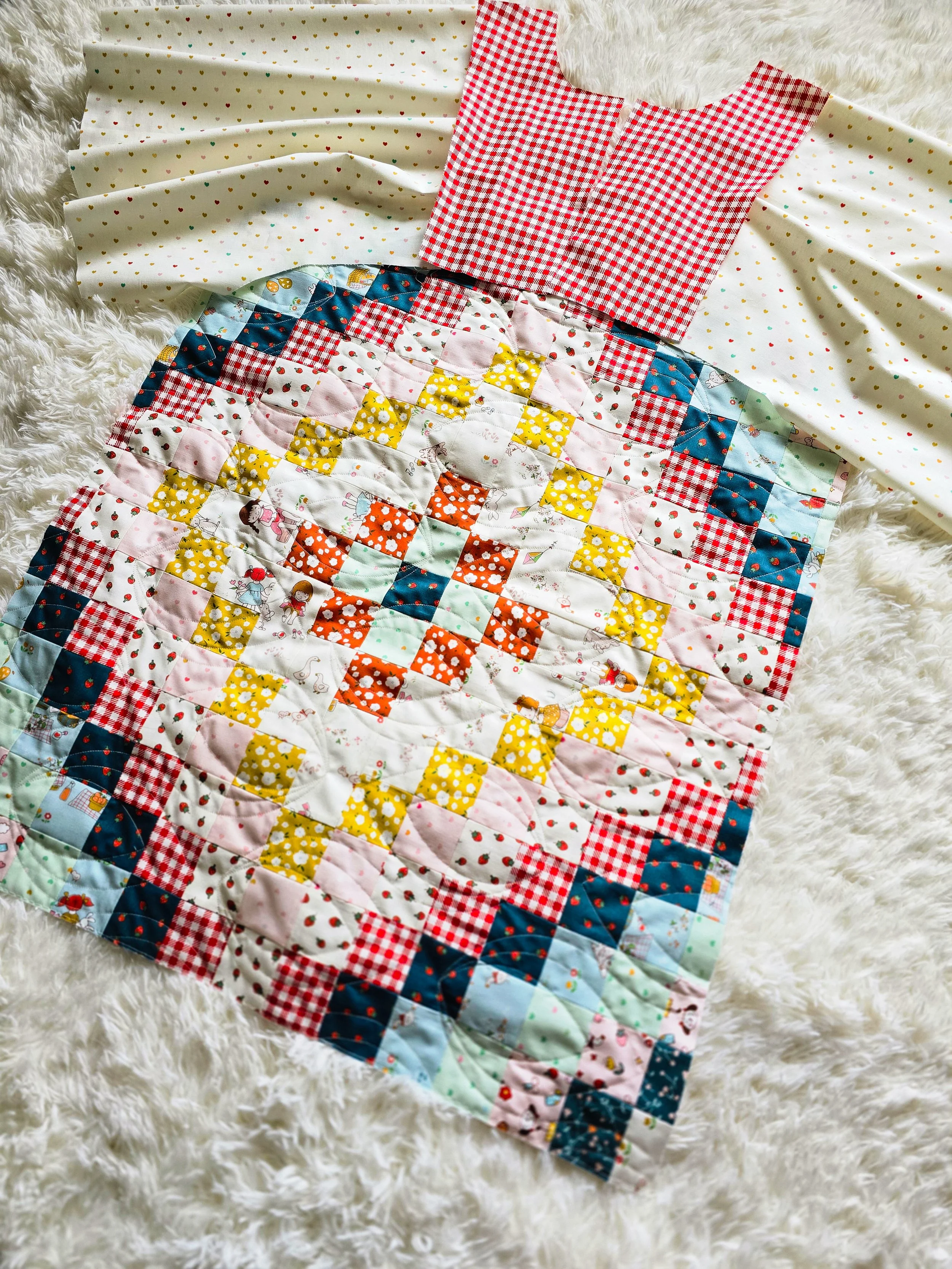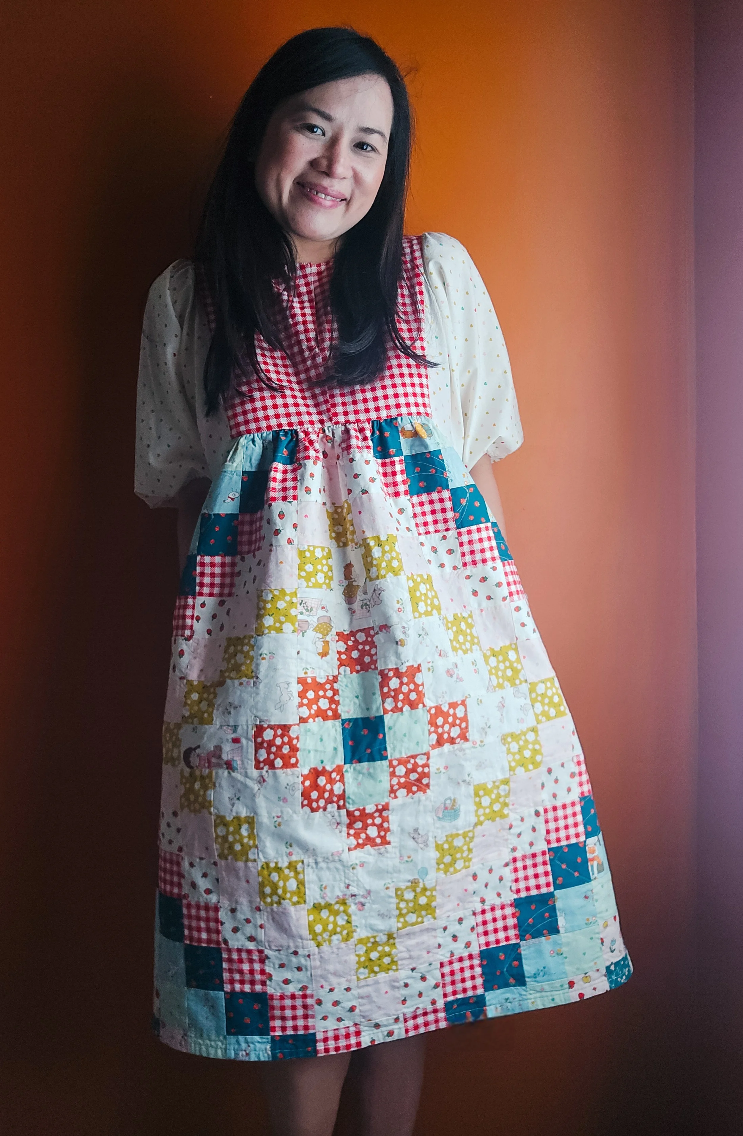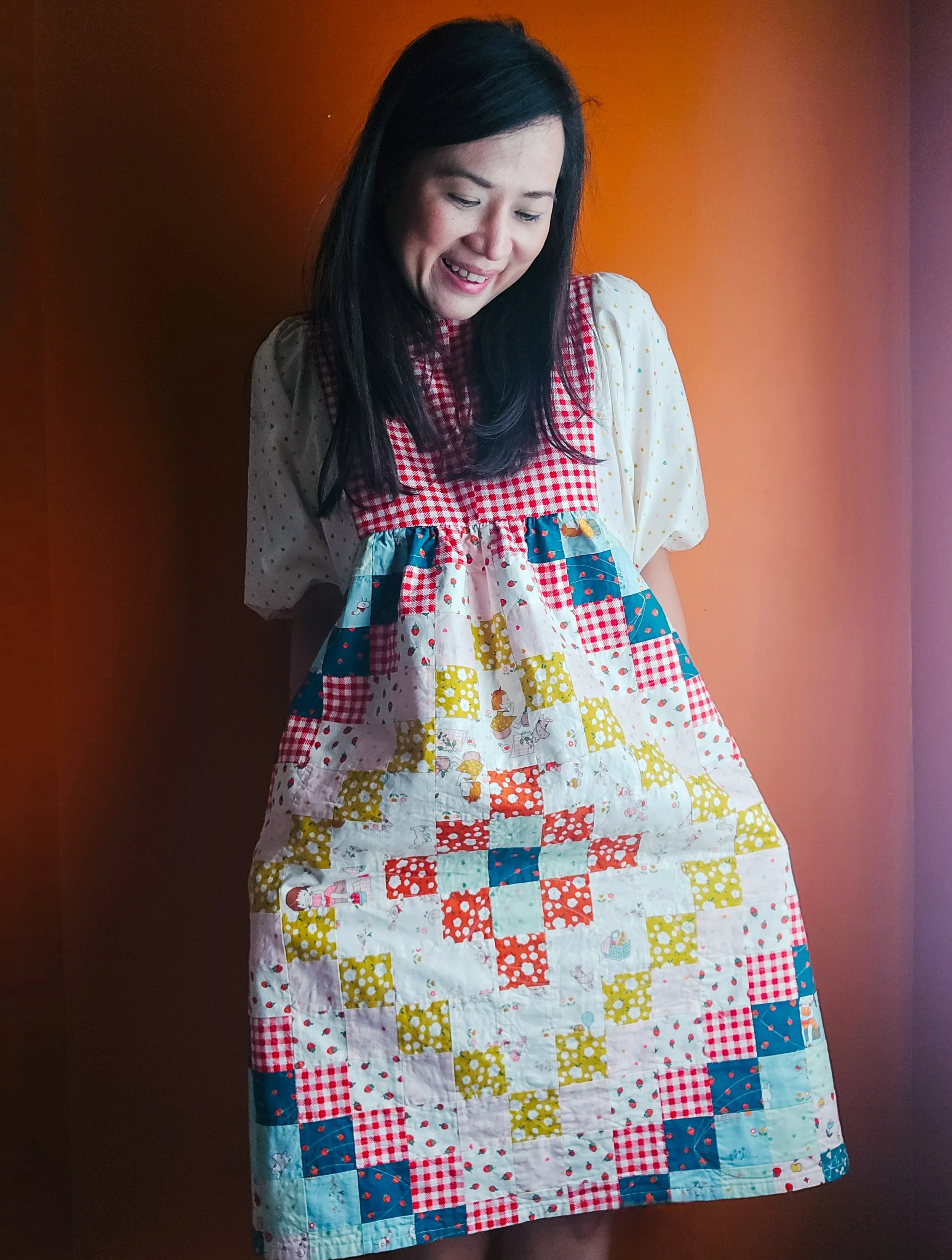 Instead of starting with a dress pattern and adding patchwork, I went the other way around. I started with the Fade Quilt and scaled it down.